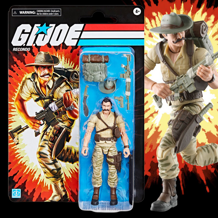 Now in retro packaging, Recondo comes ready for adventure with multiple points of articulation for high poseability. This Recondo figure contains 7 character-inspired accessory pieces including his path-clearing machete, signature slouch hat, backpack, peg stand, and weapon accessories. When Recondo is in the jungle, he owns it. Anybody else is trespassing. He thrives hauling a rucksack through sweltering rain forests, disappearing completely beneath the verdant canopy. The lengthy time Recondo spends trekking through dense undergrowth completely alone makes him seem a bit standoffish around his fellow Joes back at HQ. That all vanishes from the second he leads them into the bush to the instant he leads them back out.