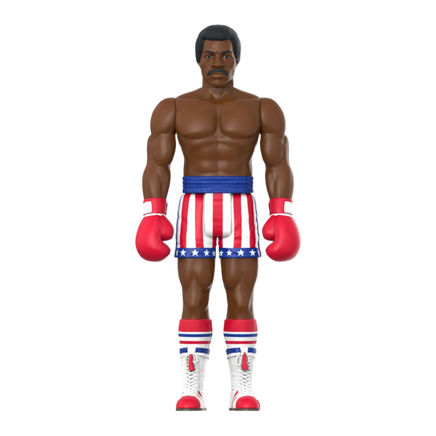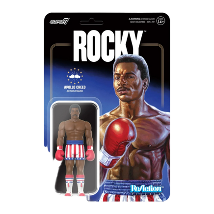 He’s never even been knocked down in the ring, but the undefeated Apollo Creed is in for all that he can handle when he steps into the ring with Rocky Balboa! This 3.75” scale articulated Rocky ReAction Figure of Apollo Creed depicts him ready to put on a show in his next bout, wearing stars-and-stripes-themed boxing trunks from the original Rockymovie. Apollo Creed may have overlooked his relatively unknown opponent, but we know you won’t overlook the opportunity to add the Rocky ReAction Figure of Apollo Creed to your collection and take it to the championship level!